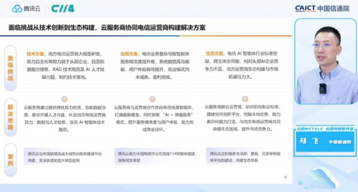 随着蓬勃发展,智能体是构建完善人工智能应用服务链的关键一环,可以看到除了国家层面的政策支持,北京、深圳、上海、浙江厦门等省市陆续发布相关文件,鼓励企业结合地方优势开展人工智能大模型、智能体研究工作。马飞在讲课中解读了腾讯云联合中国信通院云大所最新发布的研究报告《智能体驱动的大模型系统工程与产业实践——云服务商与电信运营商合作探讨》。