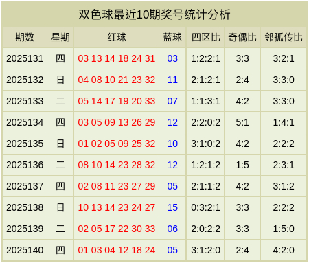 其中红球四区比为3:1:2:0,奇偶比为2:4,邻孤传比4:2:0。